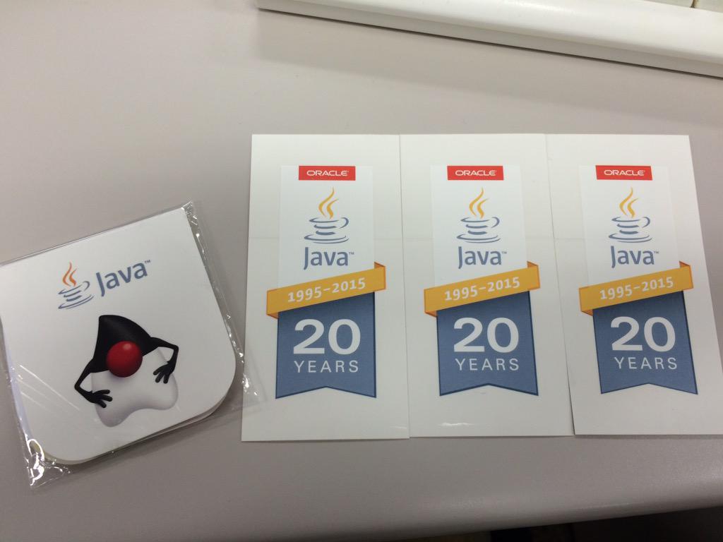 2015-08-18 JavaOneステッカーとDukeポストイット Java Magazine Vol.21を読んでJava 20周年記念のステッカー(非売品)をもらおう! - Fight the Futurejyukutyo.hatenablog.com いただきました!